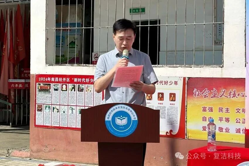 活动伊始,乐化中心小学教导主任熊小春老师致欢迎词,并介绍了学校的基本情况、近年来取得的成绩以及当前面临的困难,她代表全校师生对复洁科技的慷慨捐赠表示衷心感谢。她在致辞中表示,学校将以此为契机,进一步优化教育教学条件,助力学生全面发展。