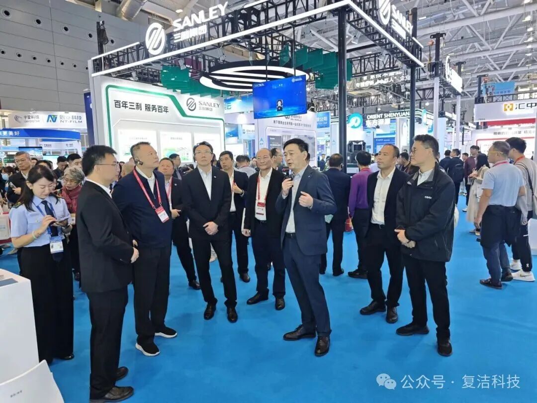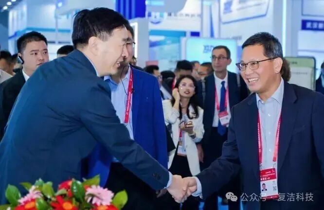 展会期间,深圳市水务局党组书记胡嘉东,深圳市环境水务集团有限公司党委书记、董事长龚利民等领导,在复洁科技董事、总裁曲献伟的陪同下莅临展位参观指导,对公司环境水务创新与绿色转型落地的成果给予充分肯定。