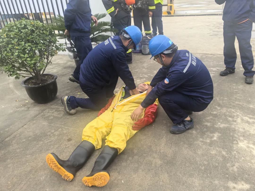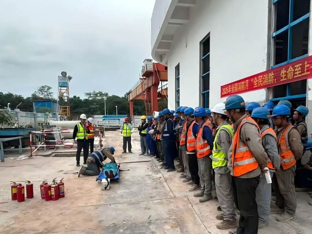 消防宣传月期间,公司举办多场实操演练。在办公场所,组织员工参与园区消防主题活动,观看消防宣传片、参观消防车及实操灭火器使用;在中试基地,举办消防演练,检验应急预案中各流程的处置程序和各应急抢险小组的实战能力;在项目现场,组织多单位联合、多科目综合的“火灾应急疏散、灭火器实操、CPR心肺复苏实操教学训练”专项演练,获得建设单位高度评价。