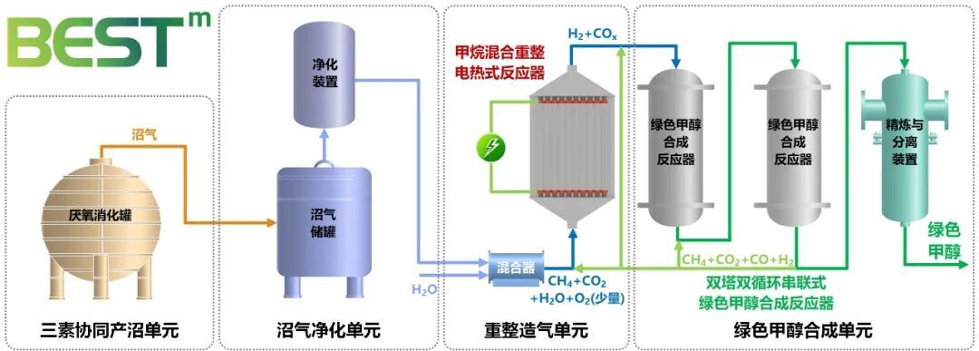 沼气全碳定向转化制绿色甲醇颠覆性技术路线