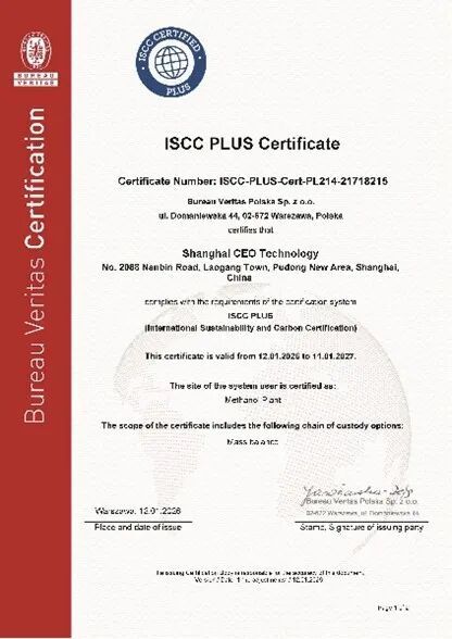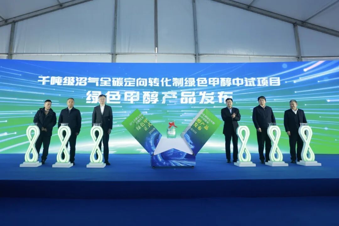 项目自去年启动以来,严格按照里程碑节点高质量推进,相继完成了催化剂等关键材料、反应器等关键装备的研制,建设发布了国际航运绿色能源认证公共服务平台。2026年1月15日,中试项目获得了ISCC-EU与ISCC-PLUS国际绿色双认证证书(项目全生命周期碳排放强度减碳率达95.66%)。1月20日,中试装置正式投料运行,并于1月23日打通全部工艺流程,1月26日国际清洁能源日当天产出了符合国际航运燃料标准的绿色甲醇燃料(主要指标:甲醇纯度达99.99%,生物源碳含量达97.78%)。