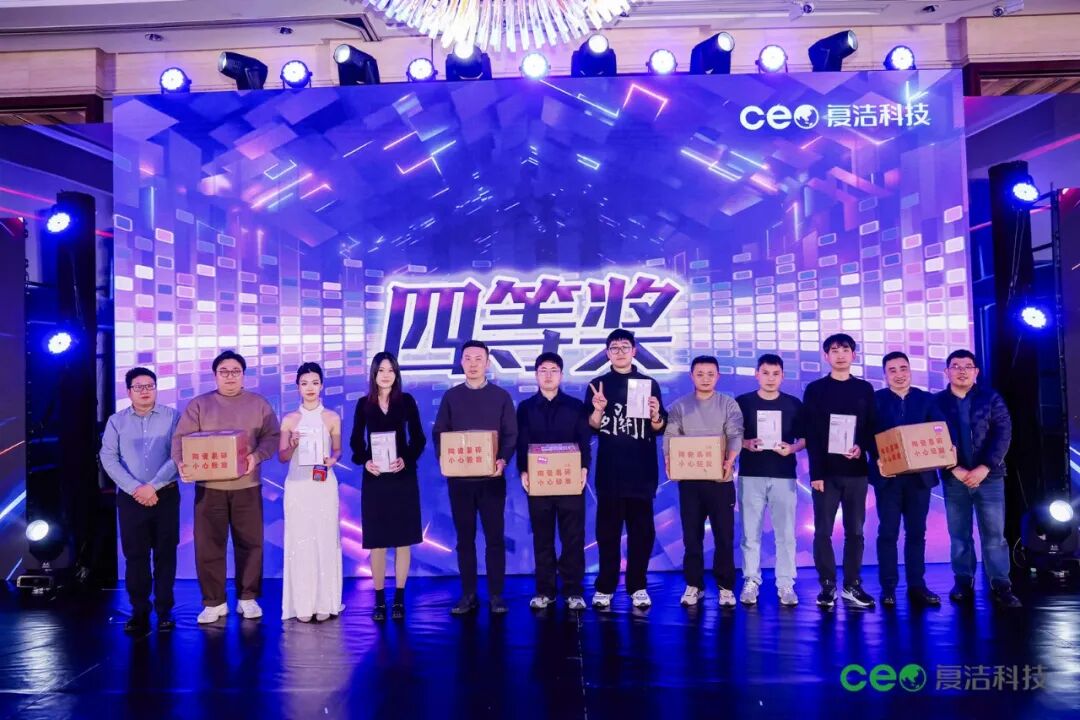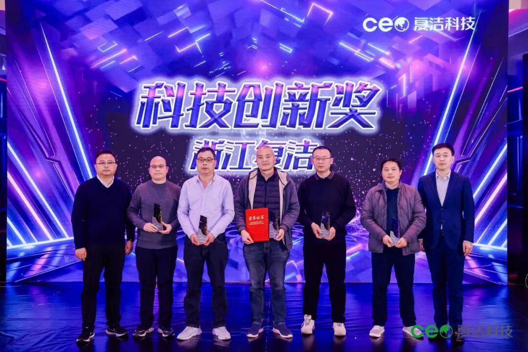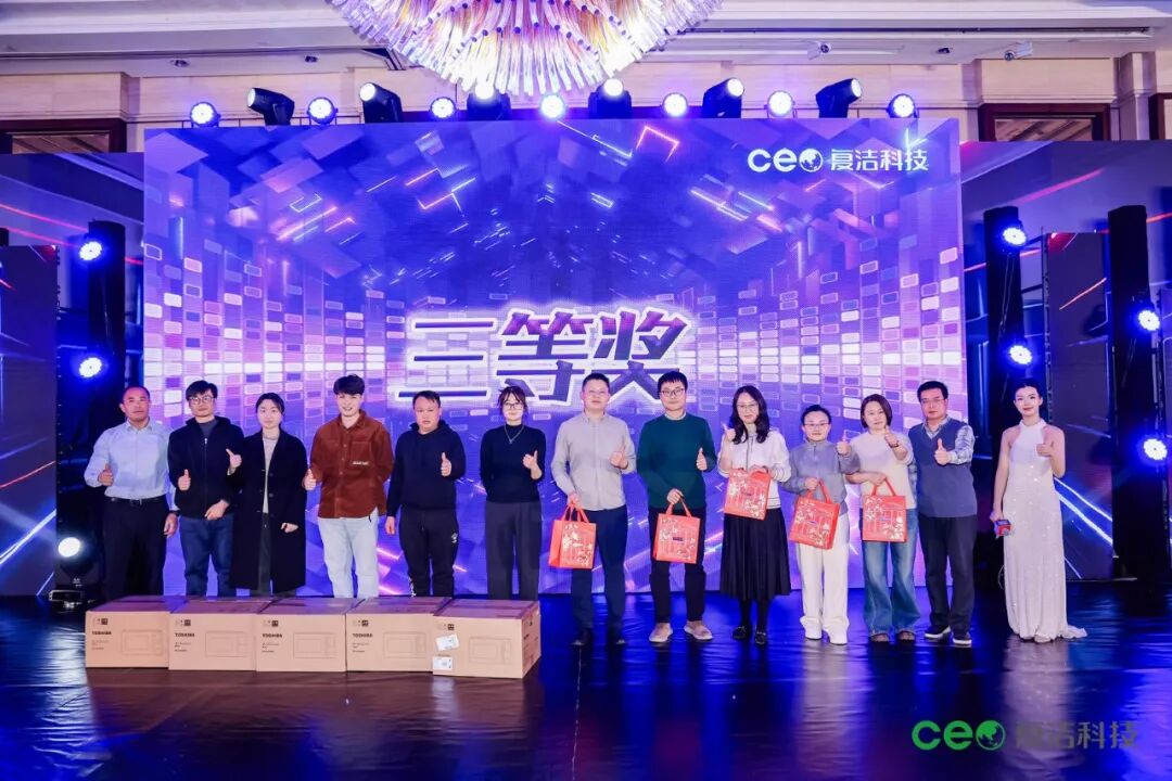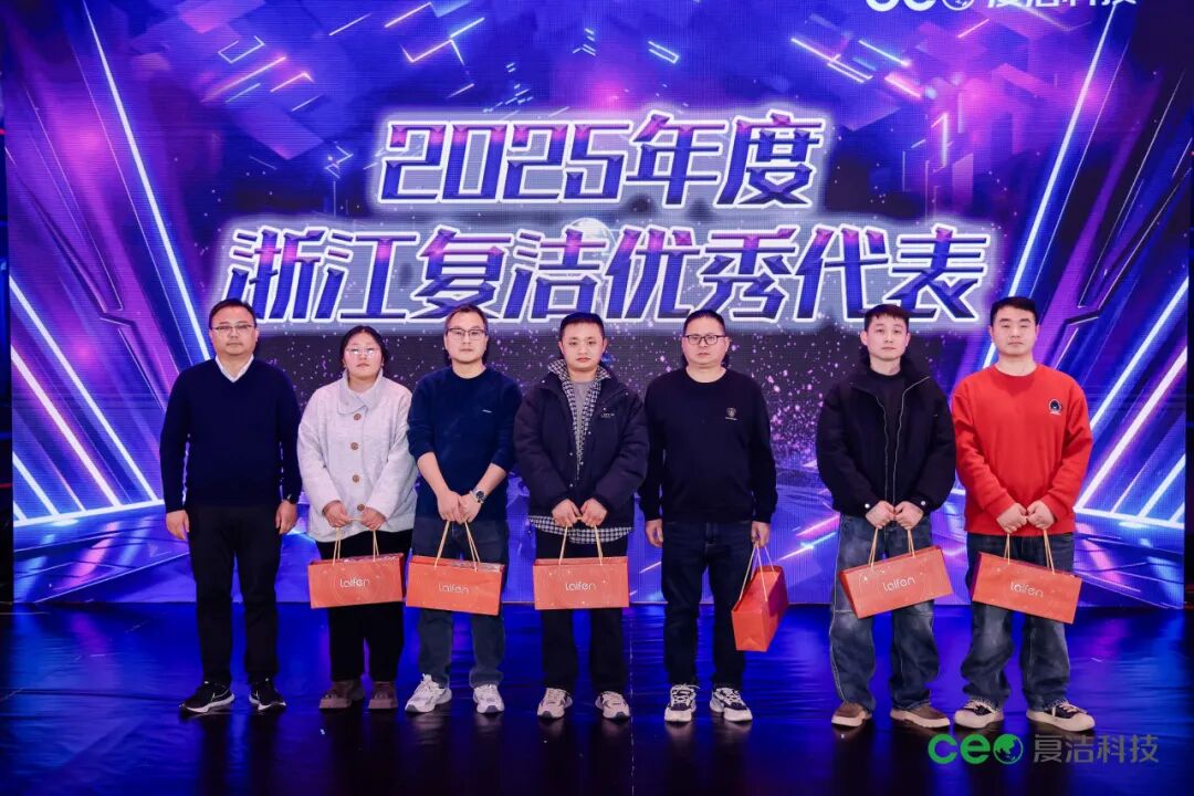 晚宴现场星光熠熠,公司对 2025年度表现卓越的个人与团队举行隆重表彰。历经部门推荐、线上投票、综合评审等严谨环节,公司年度新锐奖、优秀员工奖、杰出管理者、科技创新奖及卓越团队等重磅奖项逐一揭晓,来自子公司浙江复洁的优秀代表也受邀到场,并接受了母公司为他们特别准备的表彰礼物。