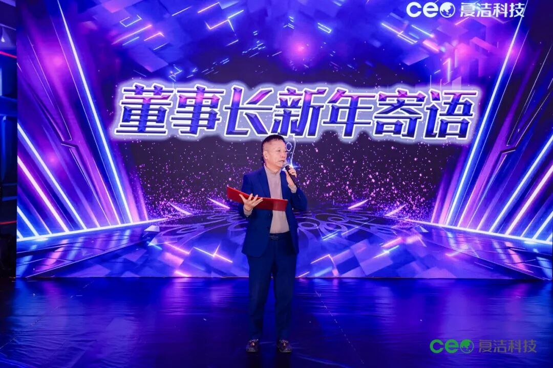 黄董表示,2025年是公司的里程碑之年,正式更名“复洁科技”,实现绿色燃料未来产业战略跨越,千吨级绿色甲醇中试取得关键突破。2026年是乘势而上、奋力攻坚的一年,将推动绿色燃料技术产业化进程,巩固传统优势、深化合作协同。他最后强调,公司始终与员工共同成长、共享发展成果,希望大家敢闯敢干,在复洁的舞台持续绽放光彩。